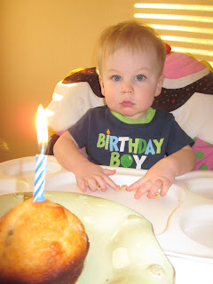 This morning Ben and I celebrated by singing "Happy Birthday" and enjoying a blueberry muffin.